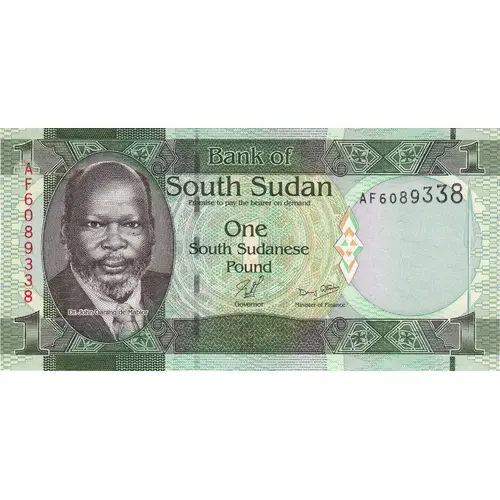 | Obverse lettering | Bank of South Sudan Promise to pay the bearer on demand One South Sudanese Pound |
