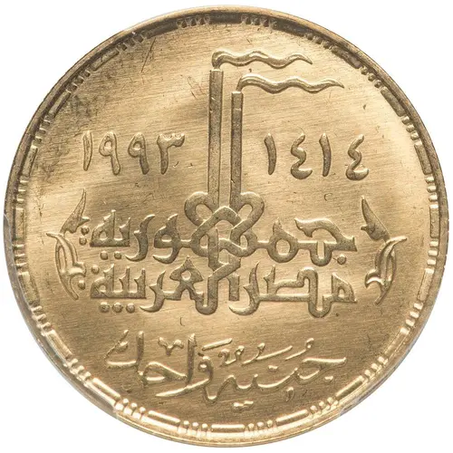 | Obverse lettering | 1993 - 1414 جمهورية مصر العربية جنيه واحد (Translation: 1993 - 1414 Arab Republic of Egypt One Pound) |