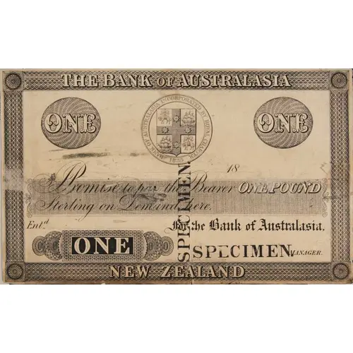 | Obverse lettering | THE BANK OF AUSTRALASIA ONE ONE PROMISE TO PAY THE BEARER ONE POUND STERLING ON DEMAND HERE FOR THE BANK OF AUSTRLASIA ONE NEW ZEALAND |