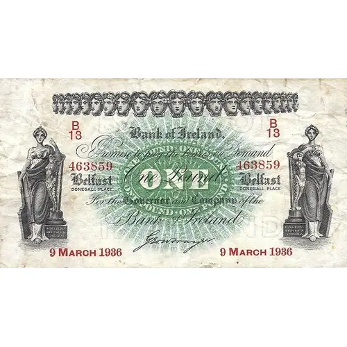| Obverse lettering | Bank of Ireland I Promise to pay the bearer on demand One Pound For the Governor and Company of the Bank of Ireland |