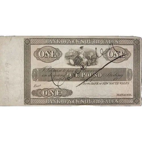 BANK OF NEW SOUTH WALES ONE ONE PROMISE TO PAY THE BEARER AT WELLINGTON N.Z. ON DEMAND ONE POUND STERLING FOR THE BANK OF NEW SOUTH WALES ONE BANK OF NEW SOUTH WALES |