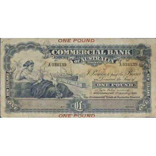 | Obverse lettering | ONE POUND THE COMMERCIAL BANK OF AUSTRALIA LIMITED NEW ZEALAND NEW ZEALAND PROMISE TO PAY THE BEARER ON DEMAND THE SUM OF ONE POUND HERE VALUE RECEIVED. WELLINGTON FOR THE COMMERCIAL BANK OF AUSTRALIA LIMITED ONE ₤1 ONE ONE POUND |