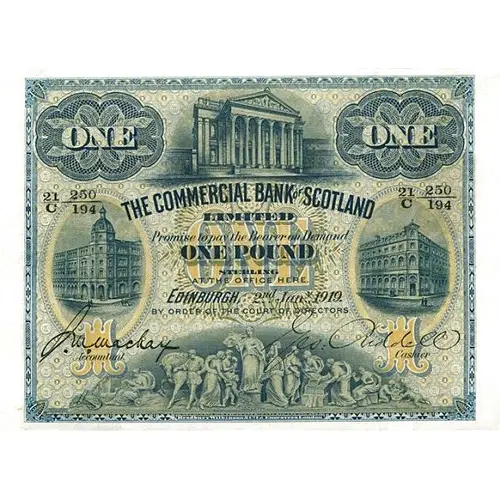The Commercial Bank of Scotland Limited Promise to pay the bearer on demand One Pound Sterling At the office here Edinburgh By order of the Court of Directors |
