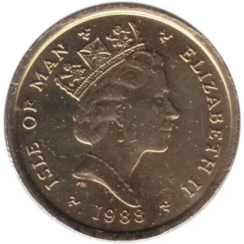 | Obverse lettering | ISLE OF MAN ELIZABETH II PM 1988 |