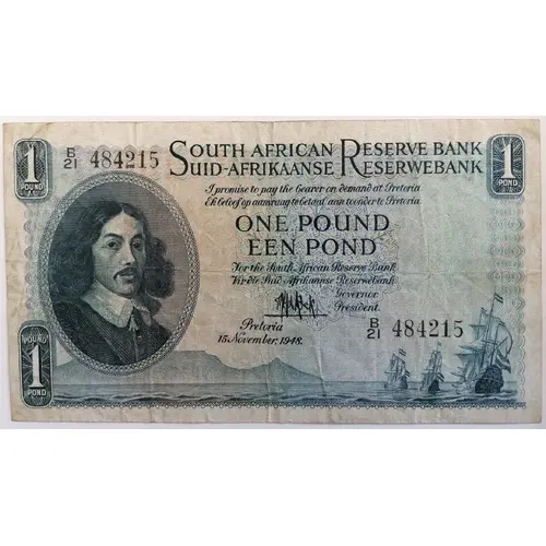 | Reverse lettering | ONE POUND SOUTH AFRICAN RESERVE BANK SUID- AFRIKAANSE RESERWE- BANK EEN POND |