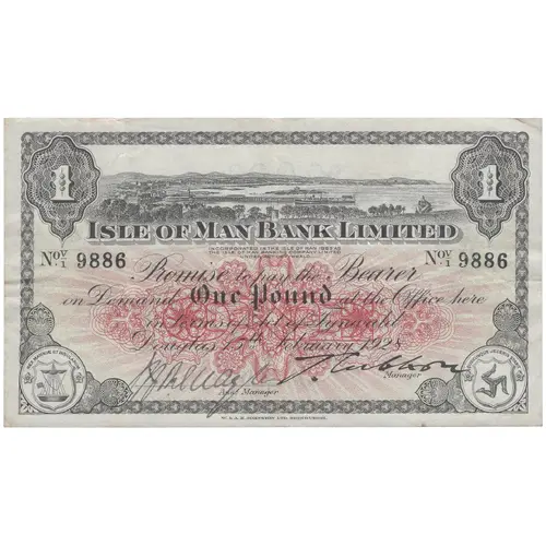 THE ISLE OF MAN BANK LIMITED INCORPORATED IN THE ISLE OF MAN 1865 AS THE ISLAND OF MAN BANKING COMPANY LIMITED UNDER ACT OF TYNWALD PROMISE TO PAY THE BEARER ON DEMAND AT THEIR OFFICE IN DOUGLAS ONE POUND IN TERMS OF ACT OF TYNWALD |