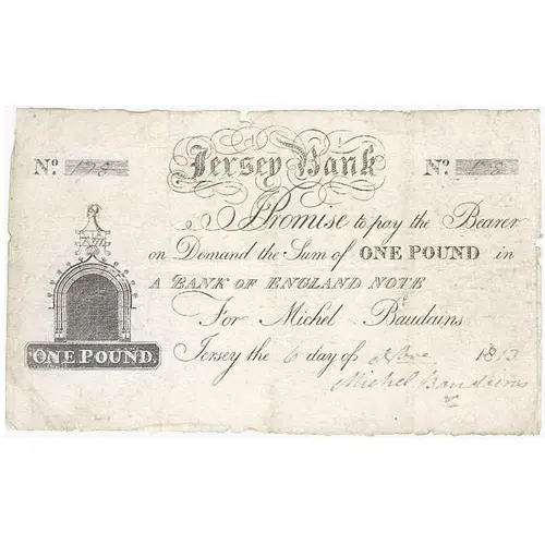 | Obverse lettering | Jersey Bank, Matth`w Amiraux, Will`m Le Breton & Co. |