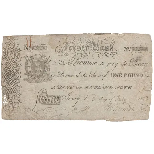 | Obverse lettering | Jersey Bank, P. H. Hamon. |