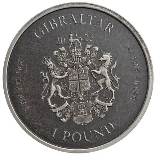 | Obverse lettering | GIBRALTAR 2023 1 POUND 1 TROY OUNCE 999 FINE SILVER |