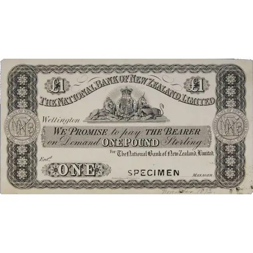 | Obverse lettering | ₤1 ₤1 THE NATIONAL BANK OF NEW ZEALAND LIMITED. WELLINGTON WE PROMISE TO PAY THE BEARER ON DEMAND ONE POUND STERLING FOR THE NATIONAL BANK OF NEW ZEALAND LIMITED ONE |
