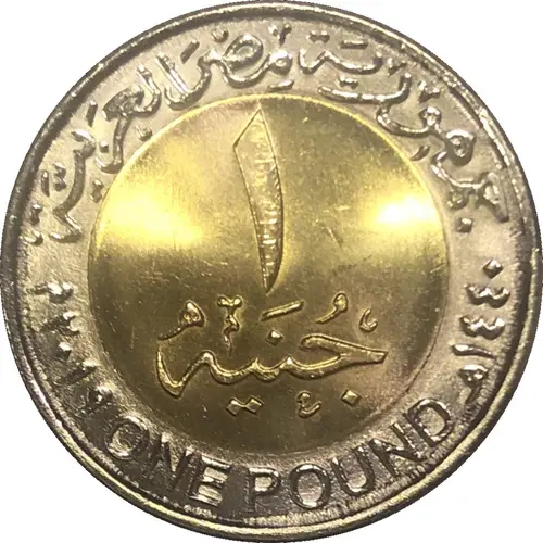 | Obverse lettering | جمهورية مصر العربية ١ جنيه ٢٠١٩م ONE POUND ١٤٤٠هـ (Translation: Arab Republic of Egypt 1 Pound AD 2019 ONE POUND AH 1440) |
