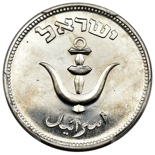 | Obverse description | Anchor; `Israel` in Hebrew and Arabic. The design is based off of a coin of Alexander Jannaeus (76-103 BCE). |