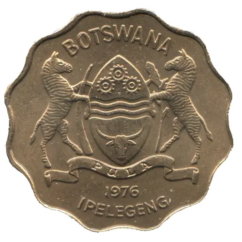 Artistry: Designed within the British Commonwealth numismatic tradition, likely by artists associated with the Royal Mint, the 1 Pula coin blends national symbolism with functional clarity. The obverse prominently features the Coat of Arms of Botswana: two zebras supporting a shield with a bull's head, cogwheel, and waves, beneath the motto "PULA." The reverse typically showcases a Springbok, an iconic antelope of Southern Africa, gracefully rendered, alongside the denomination "1 PULA" and the year, embodying Botswana's rich natural heritage.