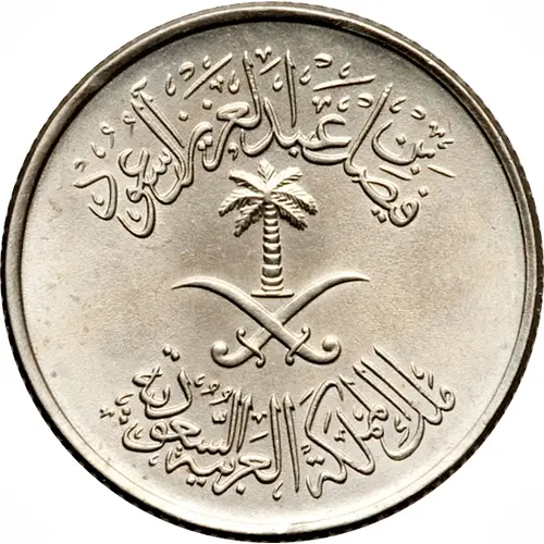 | Obverse lettering | فيصل بن عبد العزيز آل سعود ملك المملكة العربية السعودية (Translation: Faisal bin `Abd Al-`Aziz Al Saud King of the Kingdom of Saudi Arabia) |