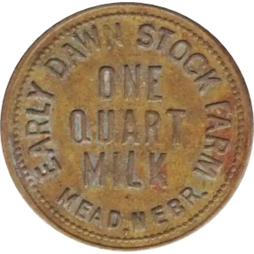 | Obverse lettering | EARLY DAWN STOCK FARM ONE QUART MILK MEAD, NEBR. |