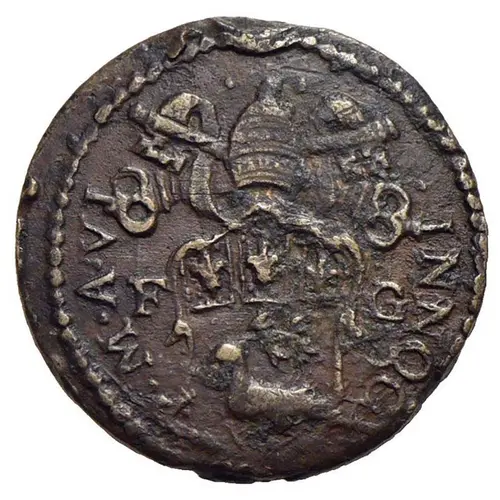 ٠INNOC٠X٠ ٠P٠M٠A٠VI F G (Translation: Innocent X Supreme Pontiff Year 6 Filippo Galeotti minter) |