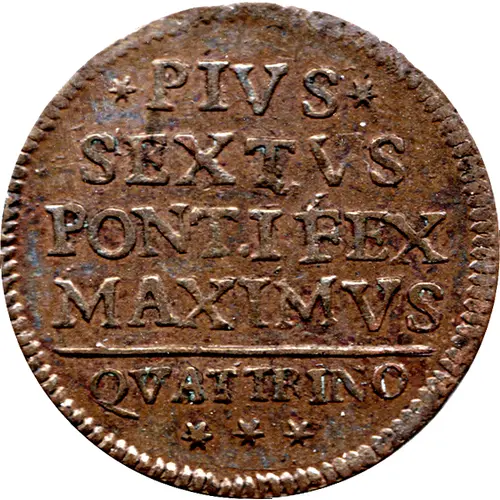 | Legenda awersu | ·PIVS· SEXTVS PONT.IFEX MAXIMVS ------------- QVATTRINO · · · |