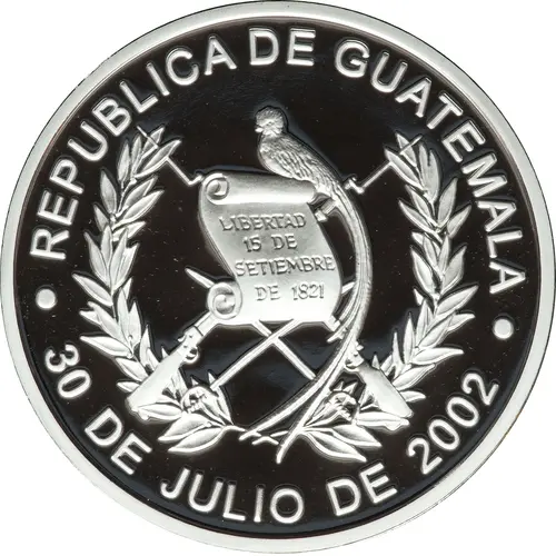 | Obverse lettering | • REPUBLICA DE GUATEMALA • LIBERTAD 15 DE SETIEMBRE DE 1821 20 DE JULIO DE 2002 (Translation: Republic of Guatemala Liberty 15th of September 1821 20th-Jul-2002) |