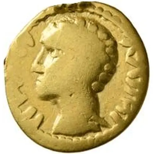 | Reverse description | Person standing while facing forward holding uncertain object in her right hand and a long scepter in her left, all surrounded by legend. |