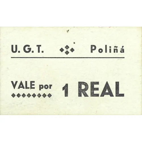 U. G. T. ⬩ Poliñá VALE por 1 REAL (Translation: U. G. T. ⬩ Poliñá Voucher for 1 Real) |