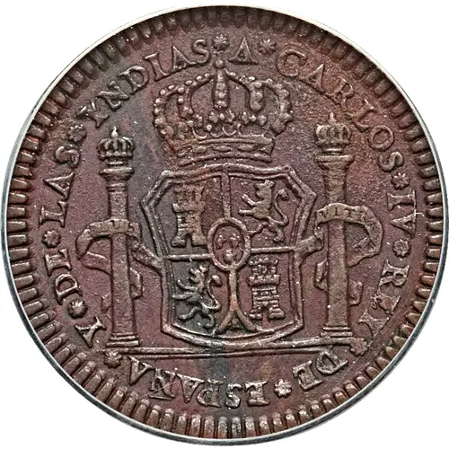 | Obverse lettering | *A*CARLOS*IV*REY*DE*ESPAÑA*Y*DE*LAS*YNDIAS |