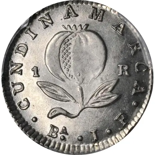 | Obverse lettering | CUNDINAMARCA 1 R BA • J • F |