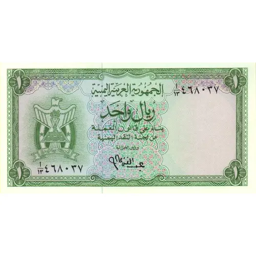 Reverse lettering ARAB REPUBLIC OF YEMEN ONE RIAL