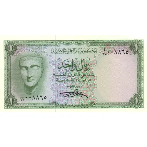 | Reverse lettering | ARAB REPUBLIC OF YEMEN ONE RIAL |