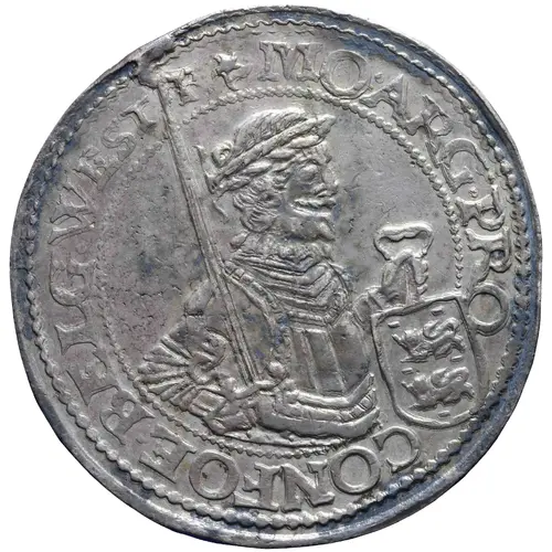 | Descrizione del dritto | Knight facing right with sword in right hand and shield with coat of arms of West-Friesland in left hand. |