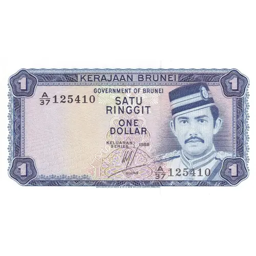 KERAJAAN BRUNEI GOVERNMENT OF BRUNEI SATU RINGGIT ONE DOLLAR (Translation: GOVERNMENT OF BRUNEI GOVERNMENT OF BRUNEI ONE RINGGIT ONE DOLLAR) |