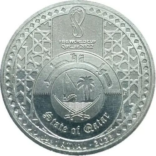 | 正面铭文 | FIFA WORLD CUP Qatar2022 دولة قطر STATE OF QATAR ريال RIYAL · 2022 |