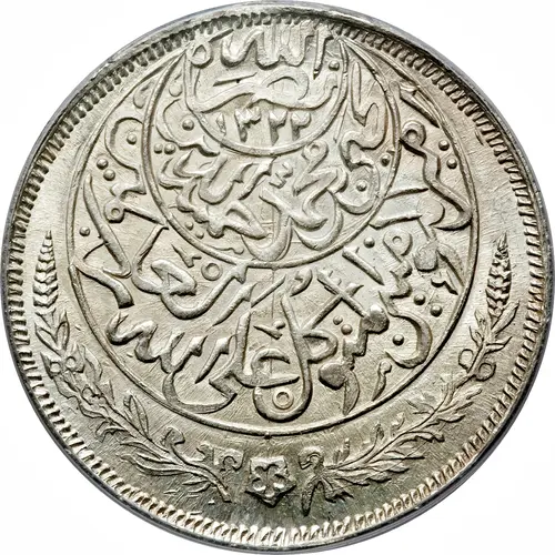 عمادي لا إله إلا الله محمد رَسول الله ضرب بدار الخلافة صنعاء اليمن سنة ١٣٤٤ (Translation: `Amadi (coinage) There`s no god but Allah, Mohammed is the prophet of Allah Struck in the capital city Sana`a Yemen 1344) |