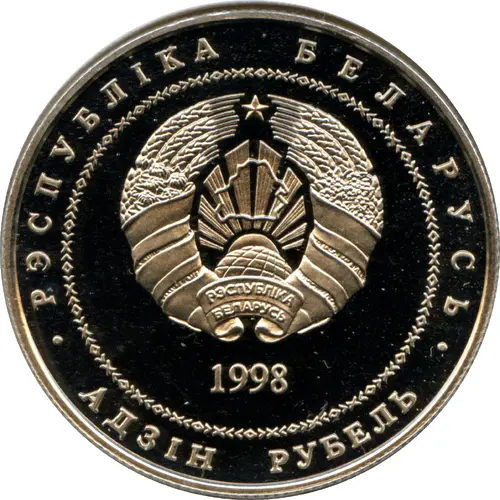 Historical Context: Issued in 1998, this 1 Rouble coin reflects Belarus's post-Soviet nation-building under President Alexander Lukashenka. Following independence in 1991, the nation sought to define its cultural heritage. The selection of the Castle of Mir, a UNESCO World Heritage site, underscores its profound significance as a symbol of Belarusian history, architectural prowess, and resilience, anchoring the new state to its deep historical roots.