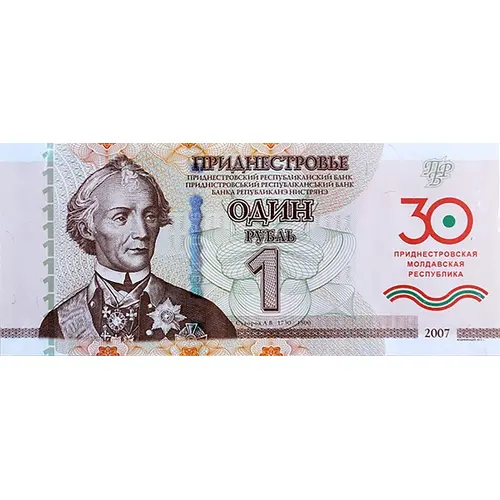 | Obverse lettering | ПРИДНЕСТРОВЬЕ ПРИДНЕСТРОВСКИЙ РЕСПУБЛИКАНСКИЙ БАНК ПРИДНІСТРОВСЬКИЙ РЕСПУБЛІКАНСКИЙ БАНК БАНКА РЕПУБЛИКАНЭ НИСТРЯНЭ ОДИН РУБЛЬ 1 30 ПРИДНЕСТРОВСКАЯ МОДАВСКАЯ РЕСПУБЛИКА (Translation: Transnistrian Republican Bank, One Ruble, Pridnestrovian Moldavian Republic) |