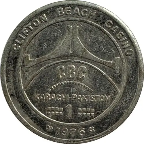 | Obverse lettering | CLIFTON BEACH CASINO CBC KARACHI PAKISTAN 1 1976 |