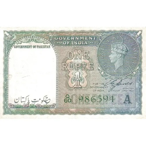 | Obverse lettering | GOVERNMENT OF INDIA GOVERNMENT OF PAKISTAN (OVER PRINTED) ONE RUPEE 1 |