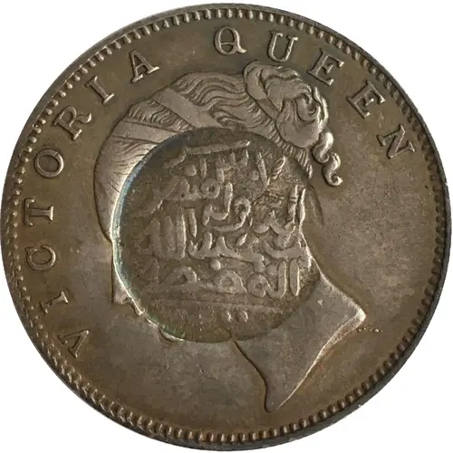 | Obverse description | Bust of Queen Victoria facing left, legend above. Countermark over the bust |