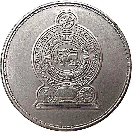 | Reverse description | The value in Sinhala, Tamil and English in the centre and the circular floral ornament divided by the country name in Sinhala at the top and the date at the bottom. |