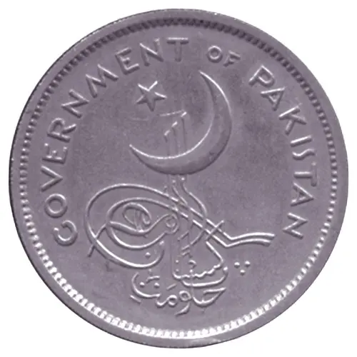 | توضیحات روی سکه | Government of Pakistan written at top. Crescent and star facing left above `حکومتِ پاکستان` (Hukumat-e-Pakistan) Tughra in the center. |