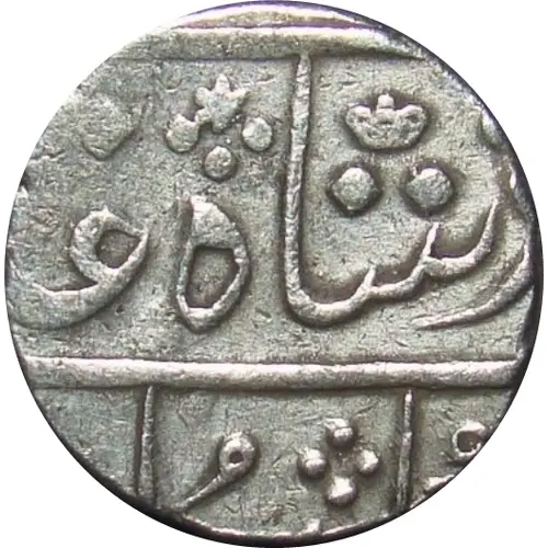 Obverse description Legend in Persian (mostly off flan): Sikka Mubarak Badshah ghazi Shah Alam