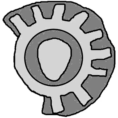 | Popis líce | Circle in circle surrounded by radial lines. |