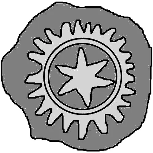 | Aversbeschreibung | Six-pointed star surrounded by radial lines. |
