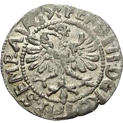 Descrizione del dritto Eagle, head left, in circle, titles of Ferdinand II.