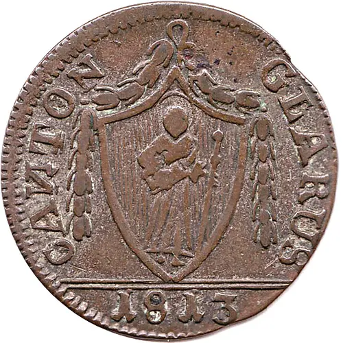 Artistry:The artistry of this billon issue, typical for smaller cantonal coinage, reflects a pragmatic, often anonymous, die-cutting tradition. Engravers prioritized clear legibility and symbolic representation over elaborate style. The obverse prominently features Saint Fridolin, patron saint of Glarus, often depicted standing or as a bust, a direct link to the canton's identity. The reverse typically displays the denomination "1 SCHILLING" and "3 RAPPEN" alongside the date, usually within a simple wreath, emphasizing its utilitarian purpose.