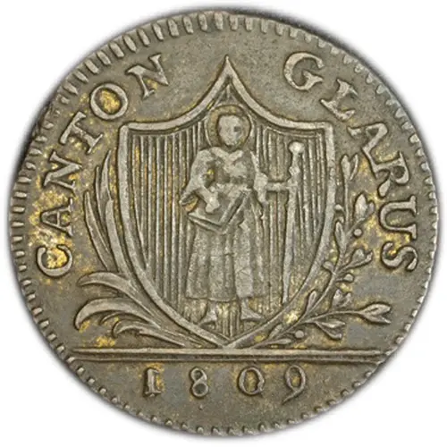 Artistry: The design of this modest billon piece exemplifies the functional aesthetic typical of smaller Swiss cantonal coinage from the early 19th century. A specific engraver is generally unrecorded. The style is restrained, leaning towards neoclassical simplicity. The obverse most likely features the cantonal coat of arms, traditionally depicting Saint Fridolin. The reverse displays the denomination and date, usually within a basic border, prioritizing clarity given the 20mm diameter.