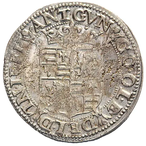 Aversbeschreibung Crowned 4-fold arms (1, 4 Oldenburg - 2, 3 Delmenhorst) over Burgundian cross.