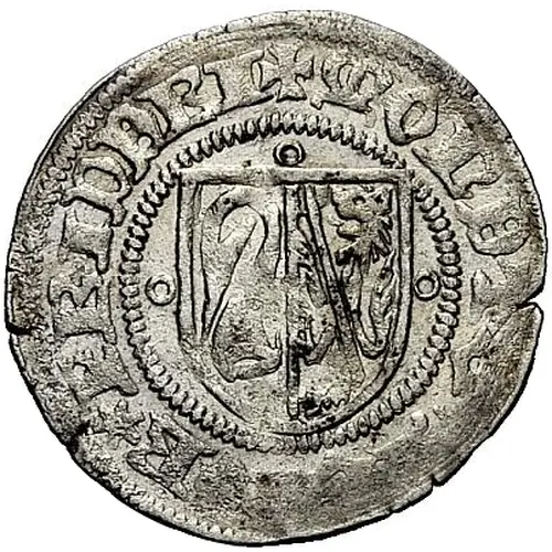 | Description de l’avers | Shielded 2-fold arms with the Bamberg lion, suspended on the top by a ring, small rings on the sides. Legend surrounding. |