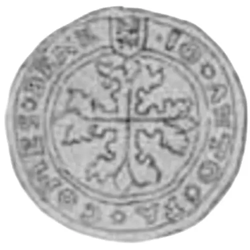 | Obverse description | Foliated cross in circle, small shield of arms at top. |