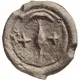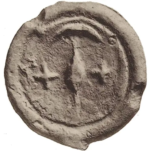 توضیحات روی سکه Decorated shield above crescent with one cross on either side.