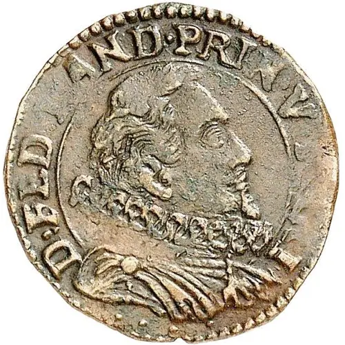 | Opis awersu | Draped and cuirassed bust on the right, with milled collar adorned with the golden fleece of Prince Federico Landi. |